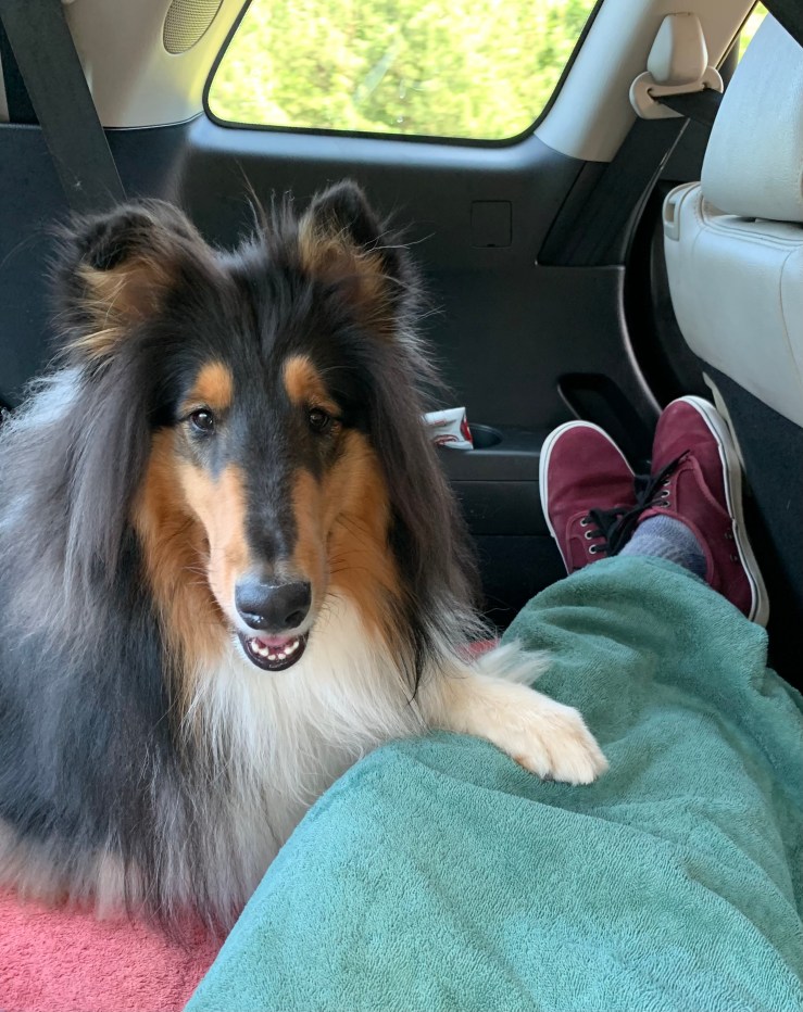 So, it was natural and fun for me and Ollie to do everything together.  Unlike many dogs who get anxious in the car associating it with going to the vet, Ollie was in the car almost every day of his life.  We went on daily adventures. We participated in canine activities like fitness, agility, nose work, obedience, herding and Canine Good Citizen. His good behaviour was well grounded in his Collie temperament and fine-tuned in his training. More than anything, Ollie was over-the-moon scoping out a forest trail.